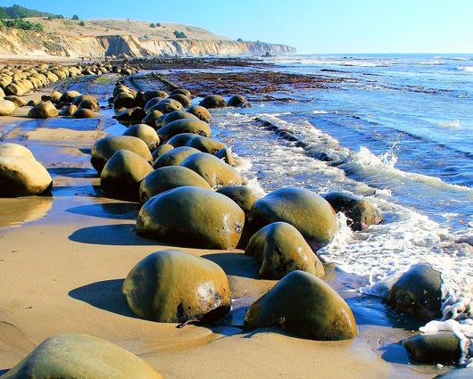 Just a bit further down the road, the unusual and photo-worthy Bowling Ball Beach awaits. If you can, stick around until low tide, when the spherical boulders rise from the sand and illustrate the intense power of the ocean’s forces against the mudstone that has eroded over thousands of years.